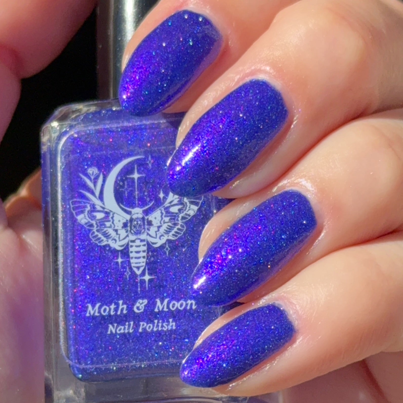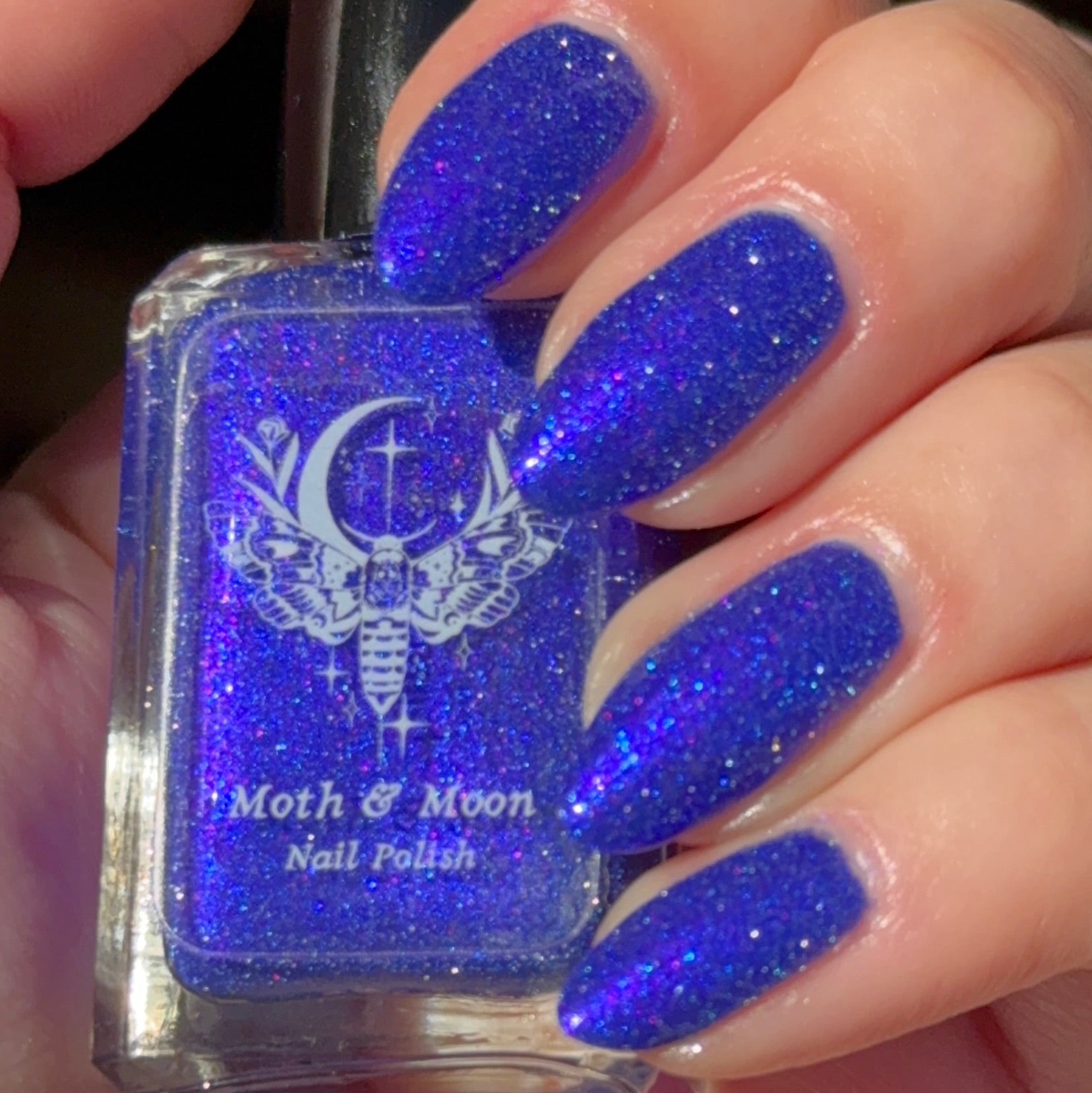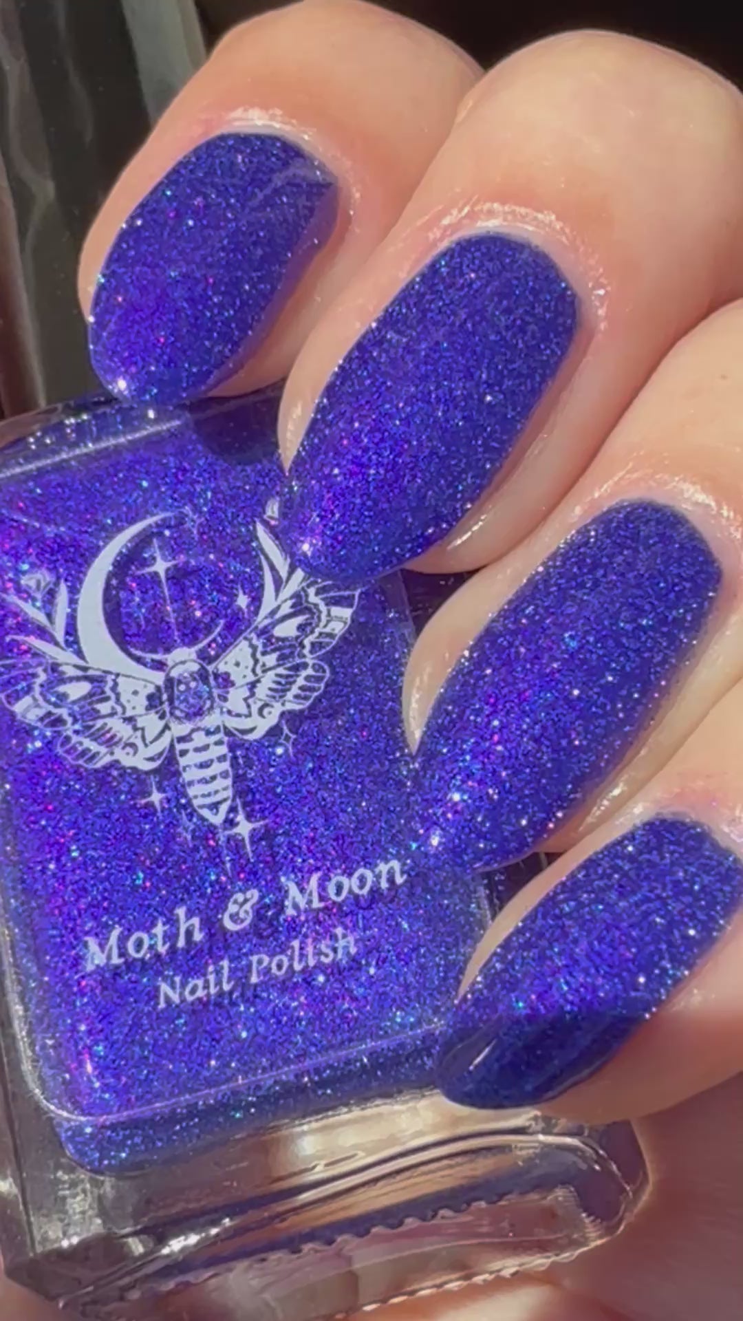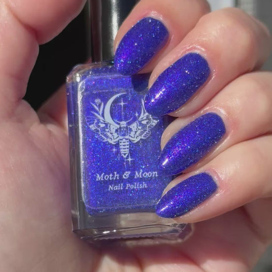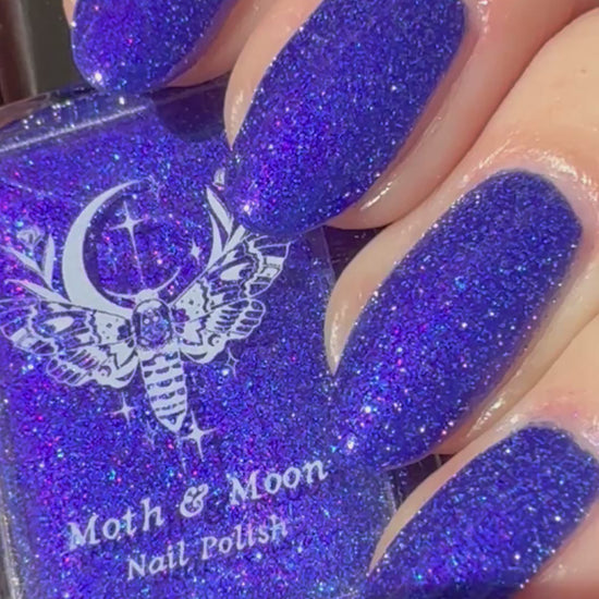 This is a blue/blurple shade with violet and blue iridescent shimmers and silver reflective glitter.