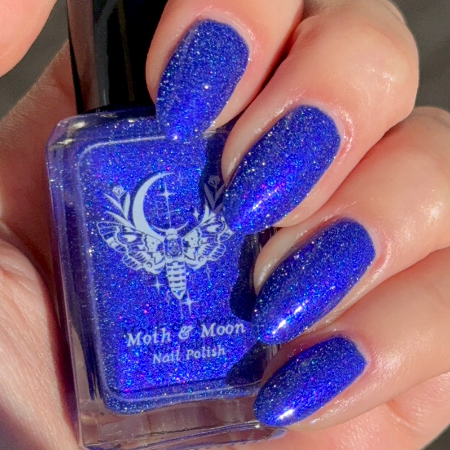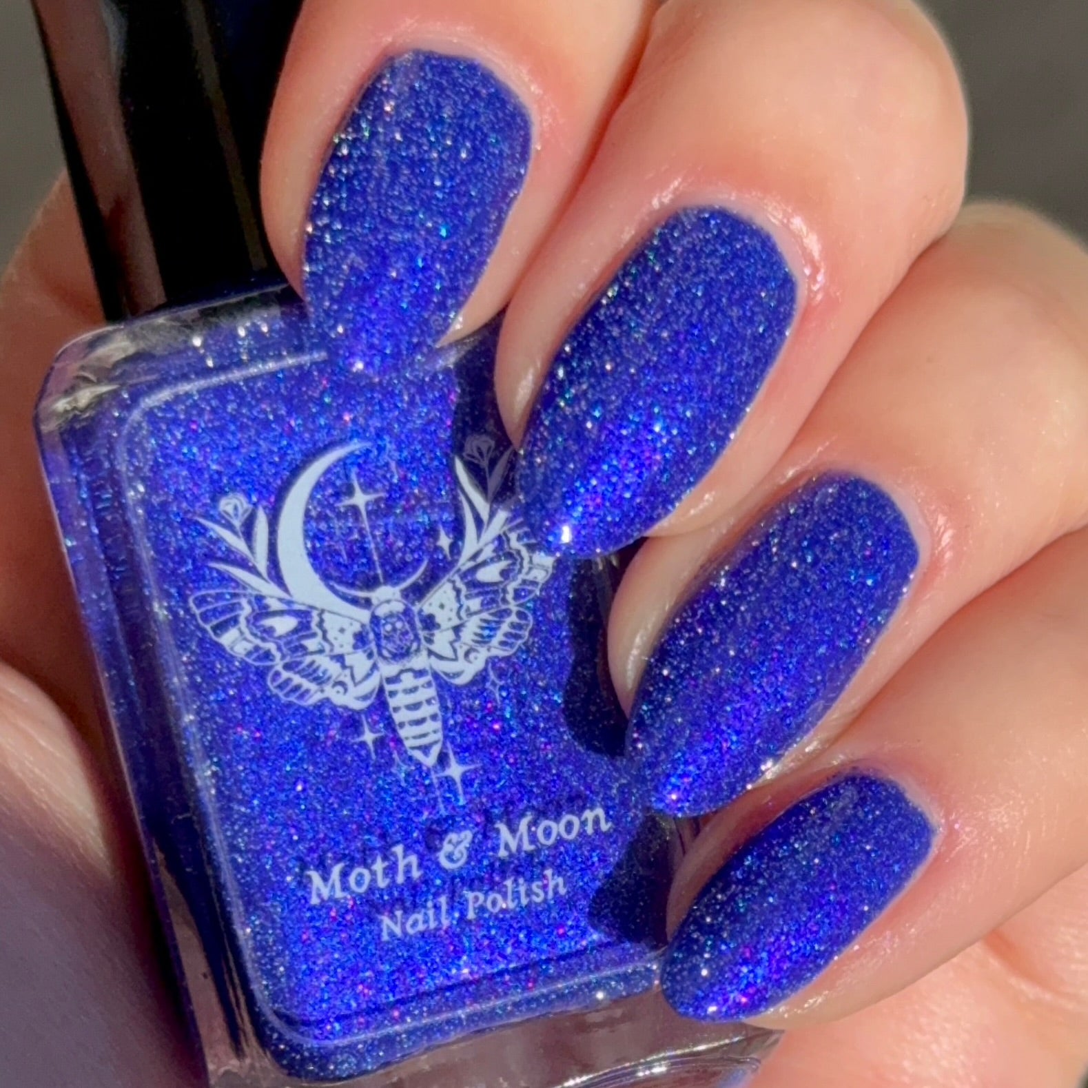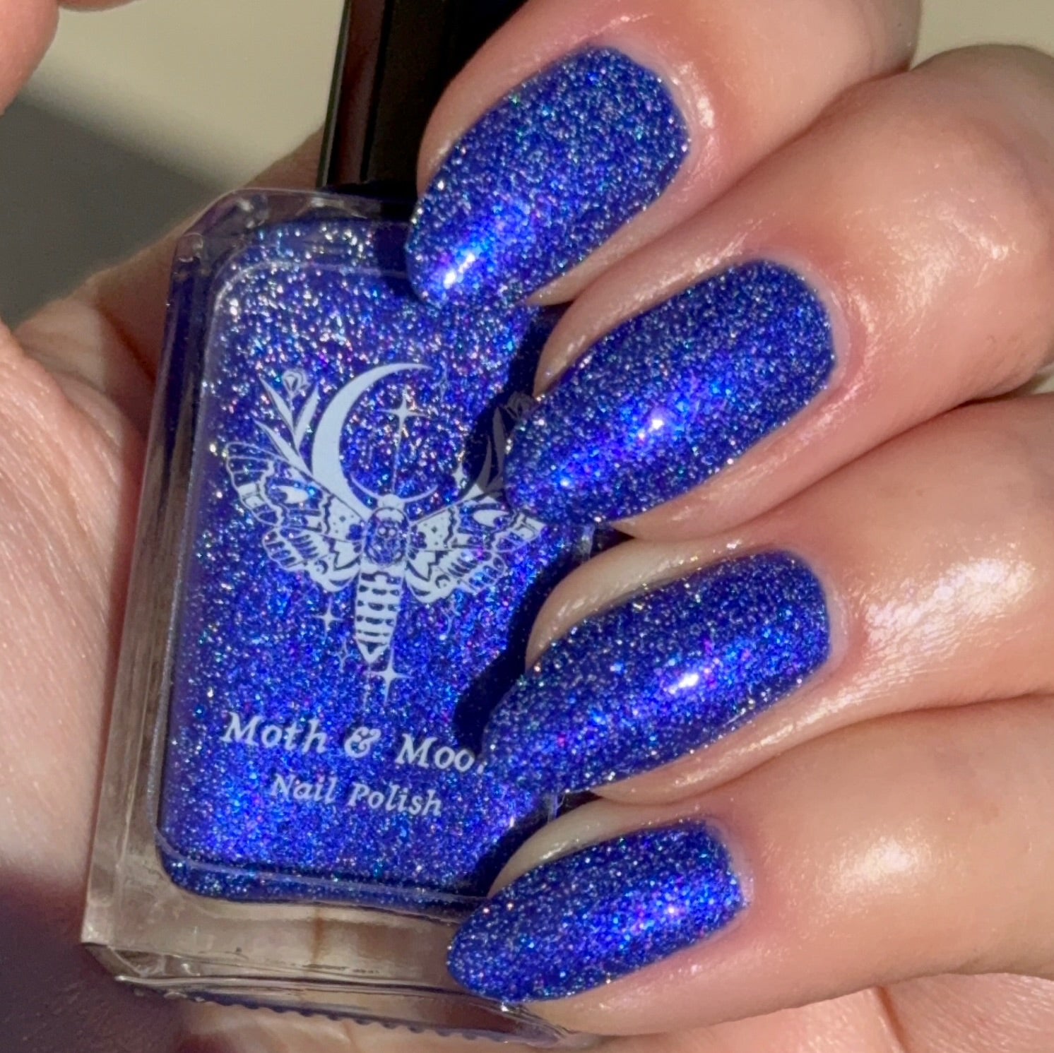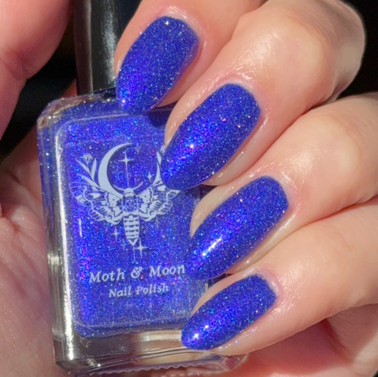 This is a blue/blurple shade with violet and blue iridescent shimmers and silver reflective glitter.