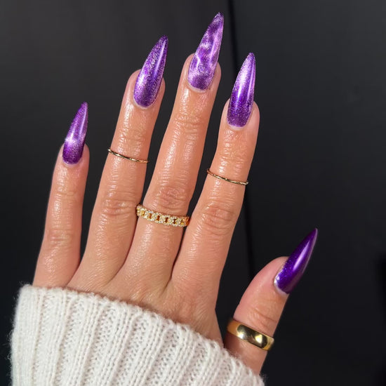 There are many different types of nail magnets that produce different effects! The magnet can be used directly above the nail, under the fingertip, or to the sides of the nail, as long as the polish is still wet. I highly encourage practice and experimentation for all sorts of looks!