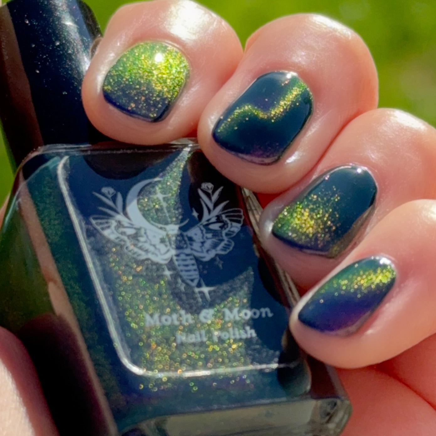 This is a deep teal shade with violet duochrome magnetic shimmer.