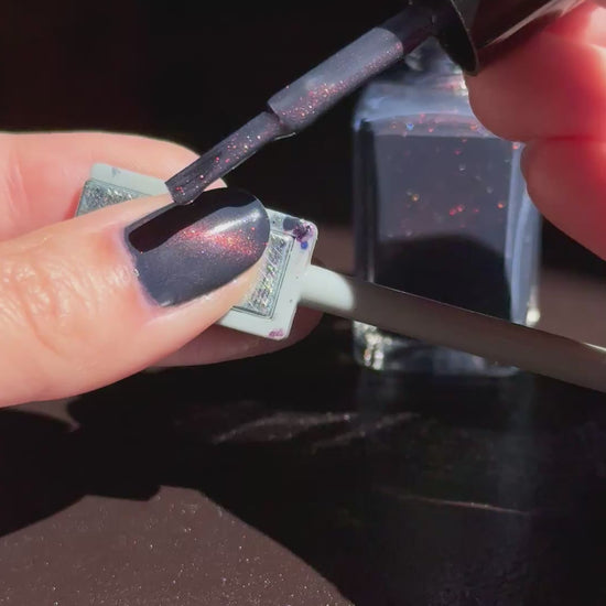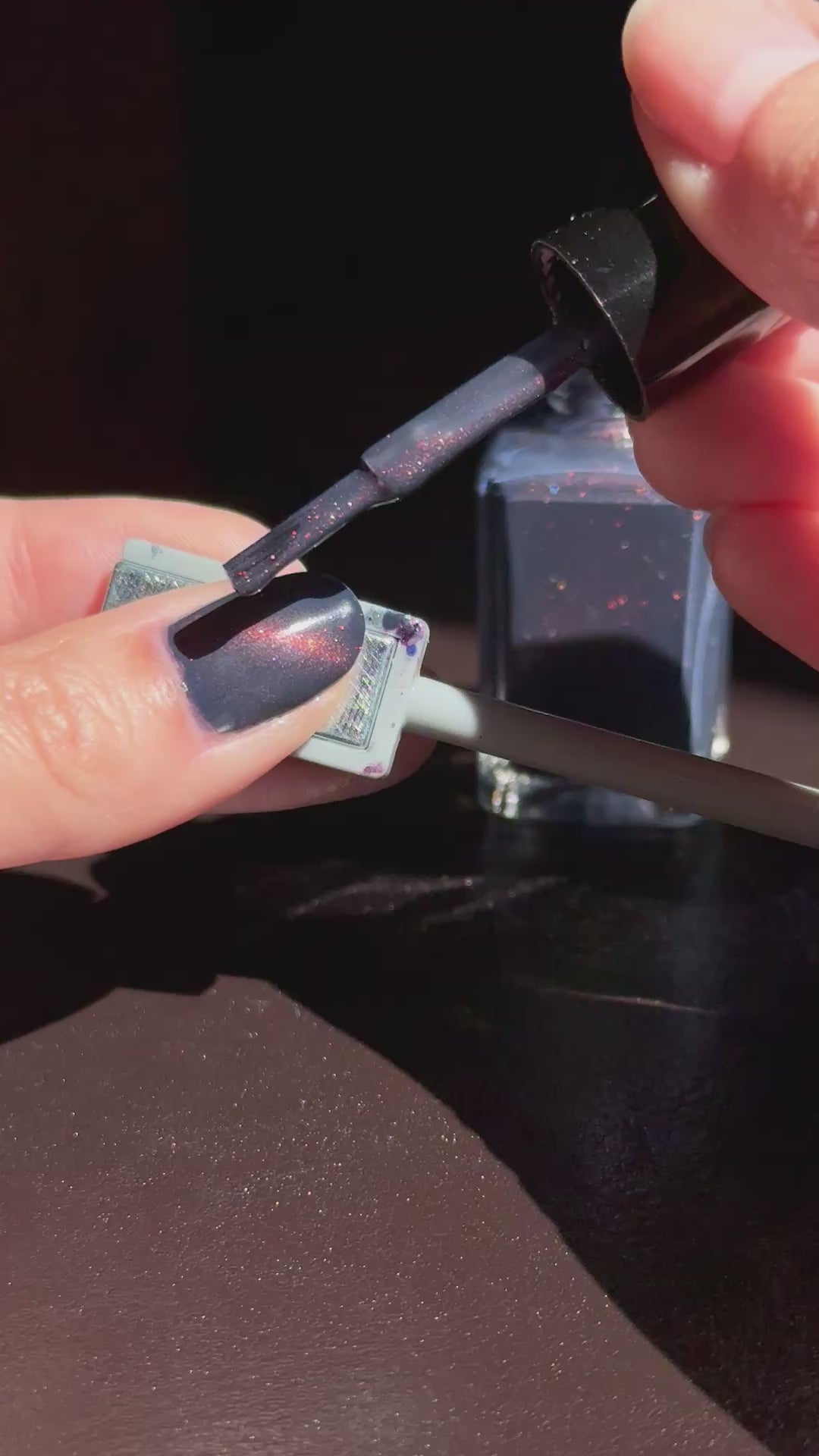 There are many different types of nail magnets that produce different effects! The magnet can be used directly above the nail, under the fingertip, or to the sides of the nail, as long as the polish is still wet. I highly encourage practice and experimentation for all sorts of looks!