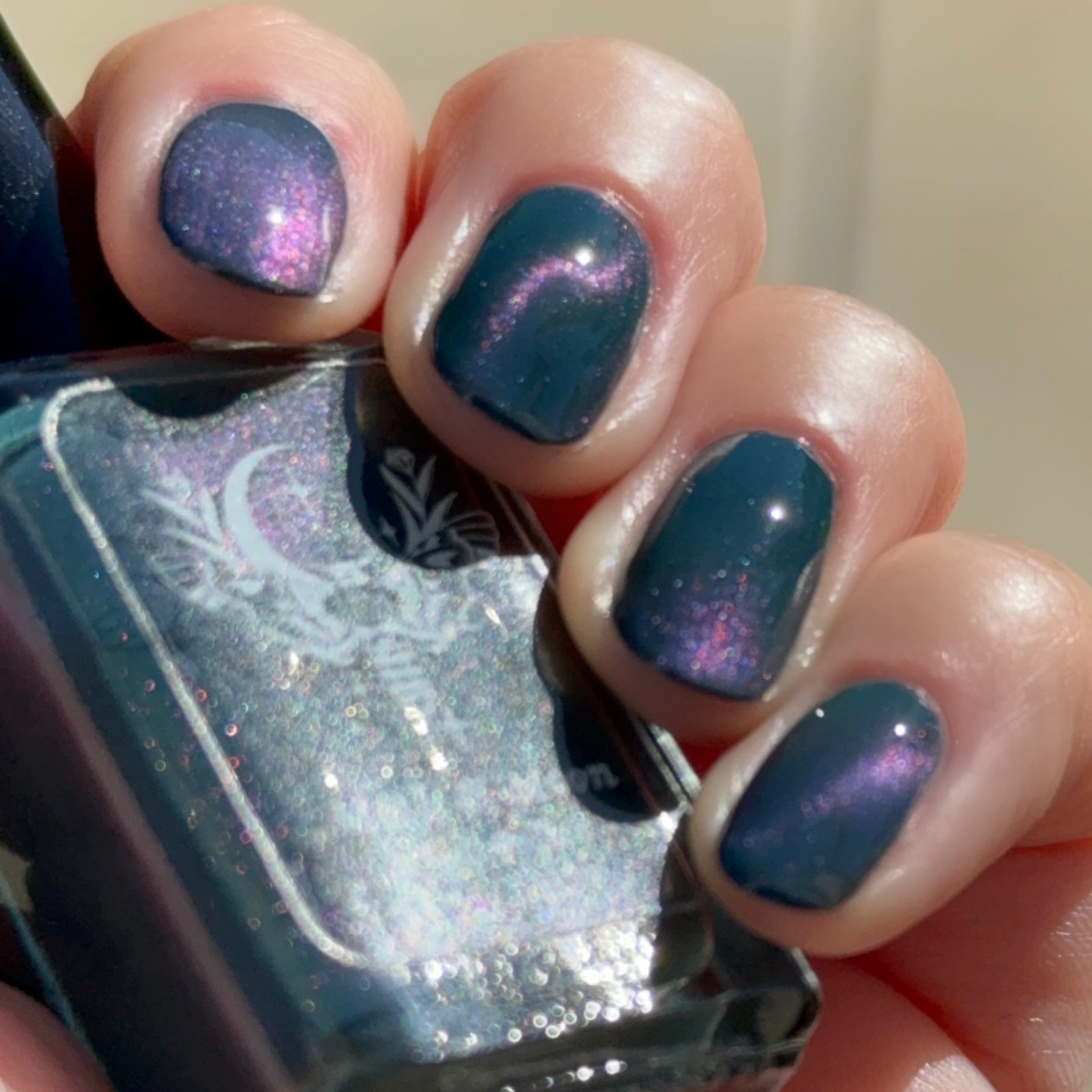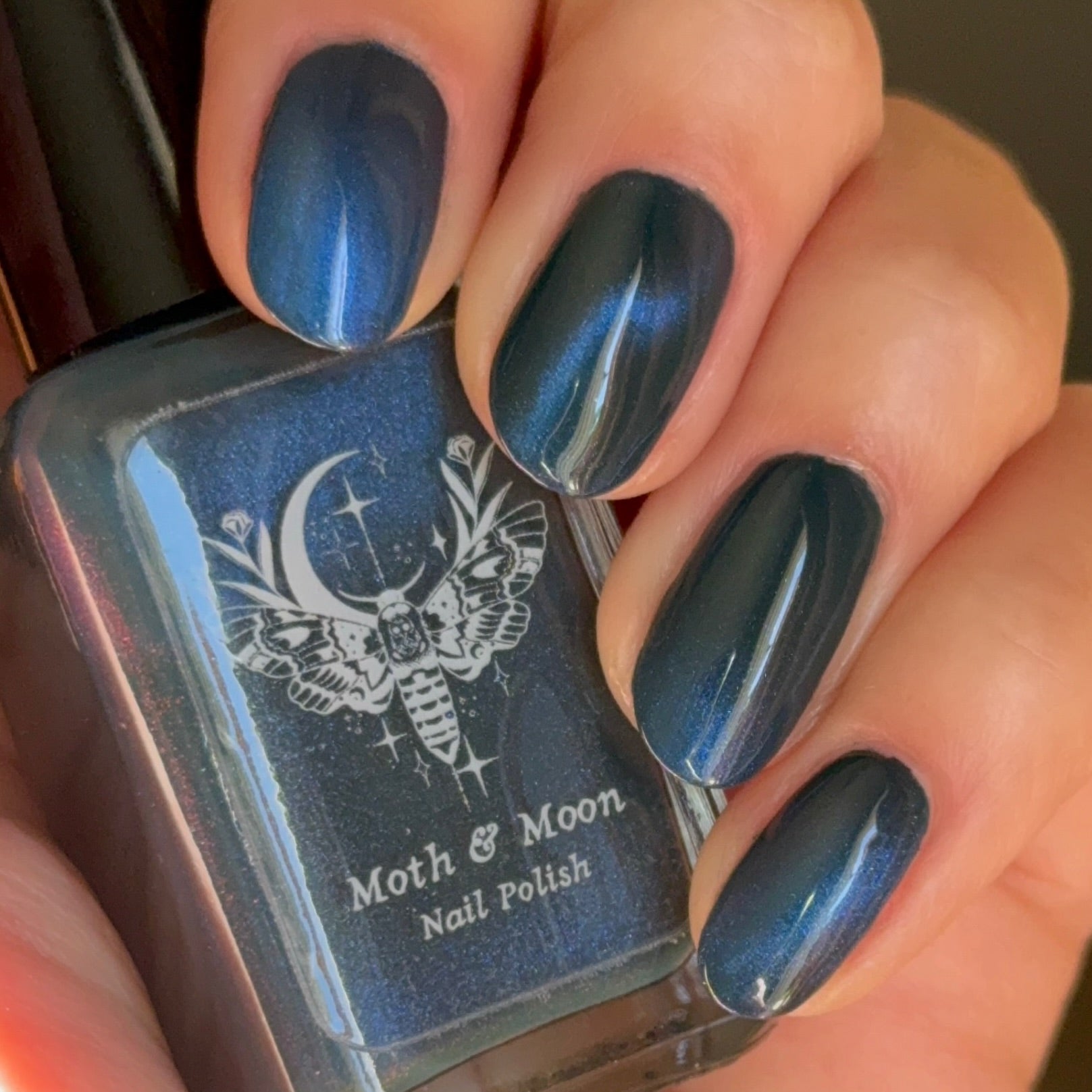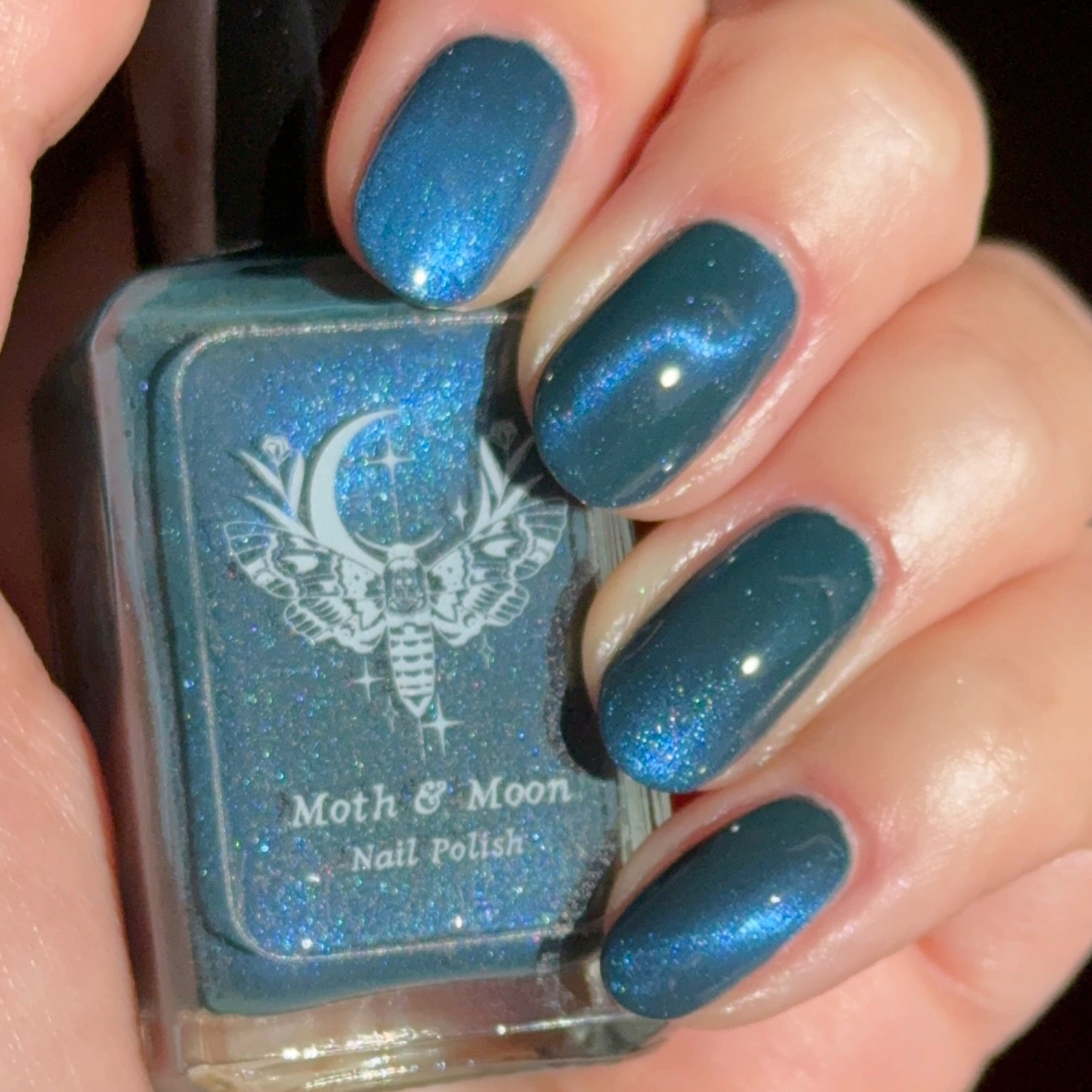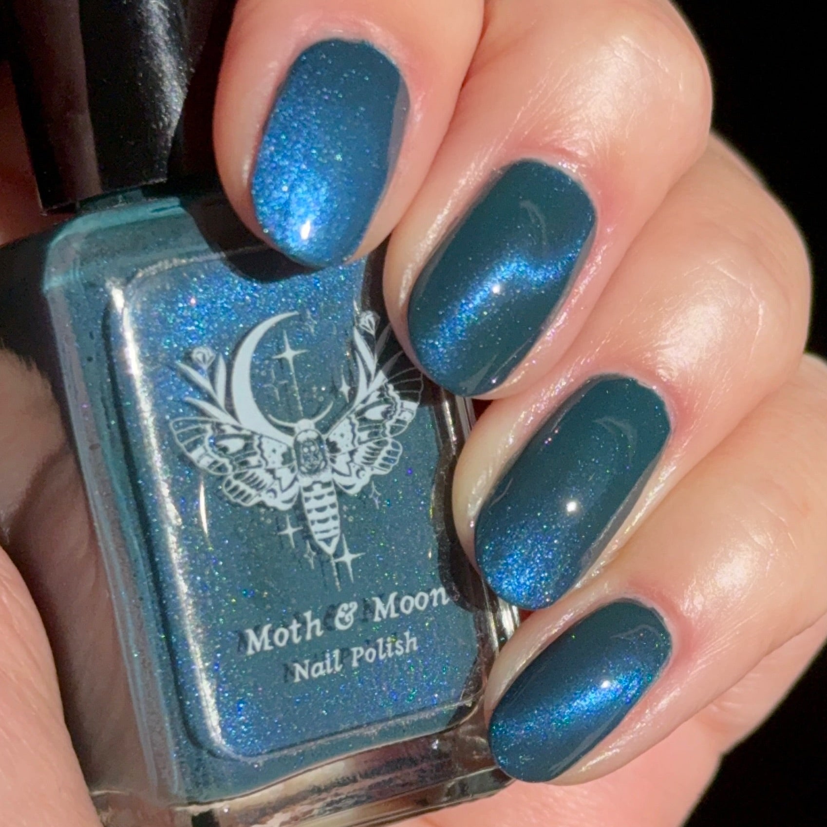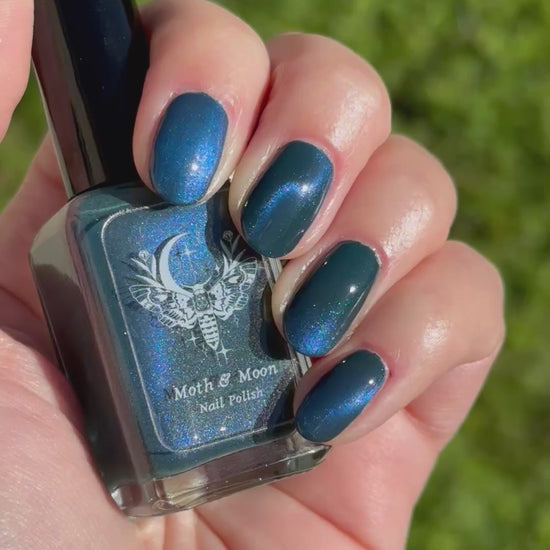 Deep teal with blue duochrome magnetic pigment.