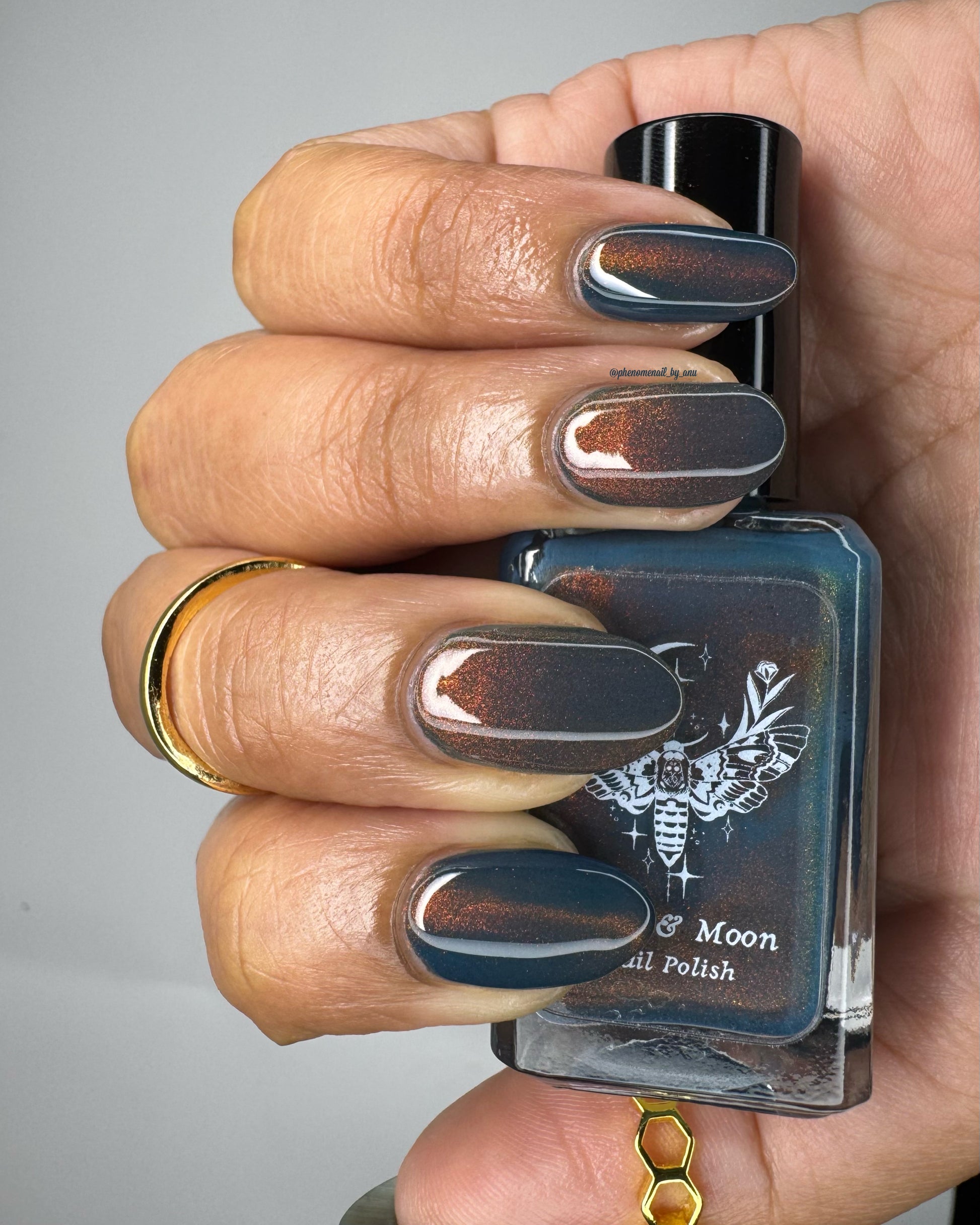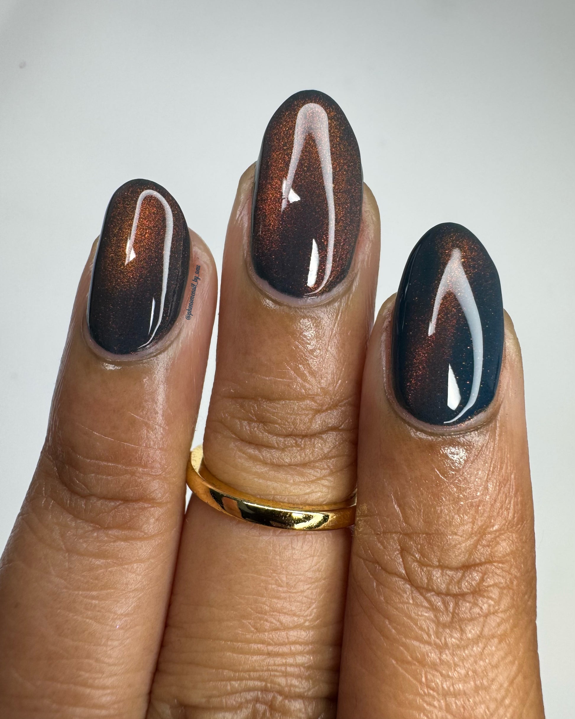 There are many different types of nail magnets that produce different effects! The magnet can be used directly above the nail, under the fingertip, or to the sides of the nail, as long as the polish is still wet. I highly encourage practice and experimentation for all sorts of looks!
